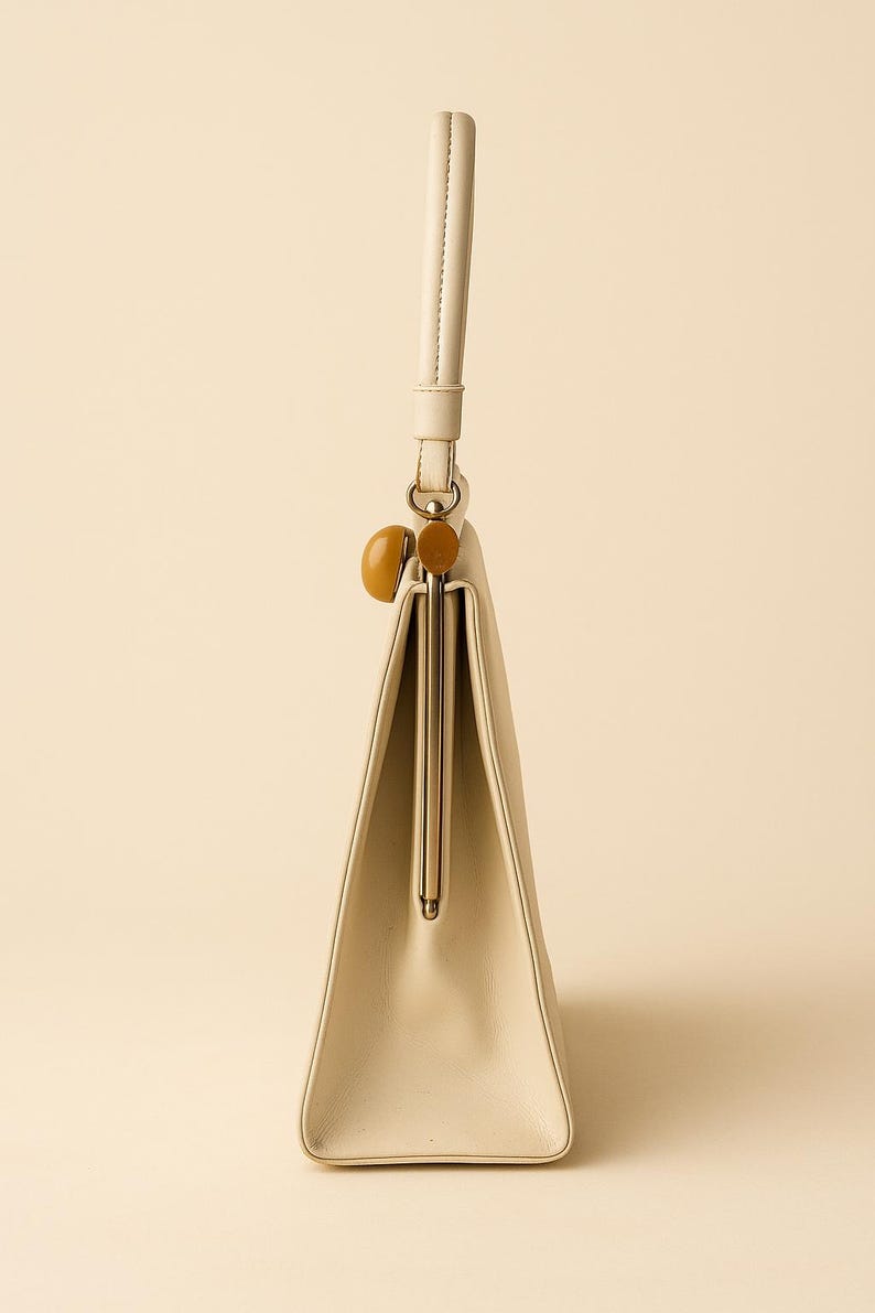 1960s Theodore of California Cream Faux Patent Leather Handbag Amber Frame Vintage Purse