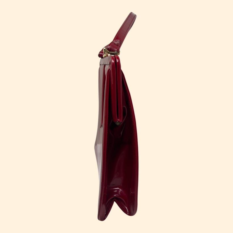 1960s Vintage cherry Red Patent Leather Handbag Structured Frame Mid Century Purse